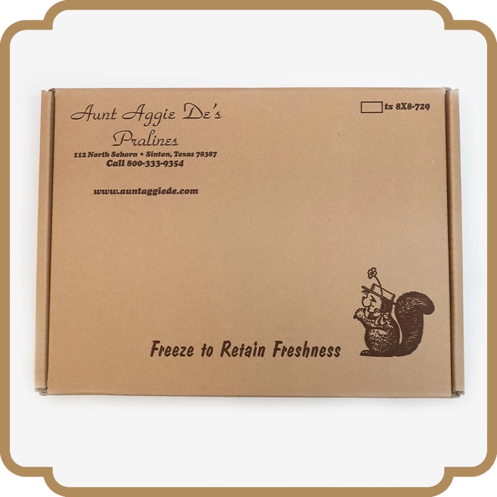 Our iconic 2-oz. pralines packed in a sturdy box—no frills, just great pralines at a great price. The box doubles as freezer storage, so you can stock up and enjoy them over time.
