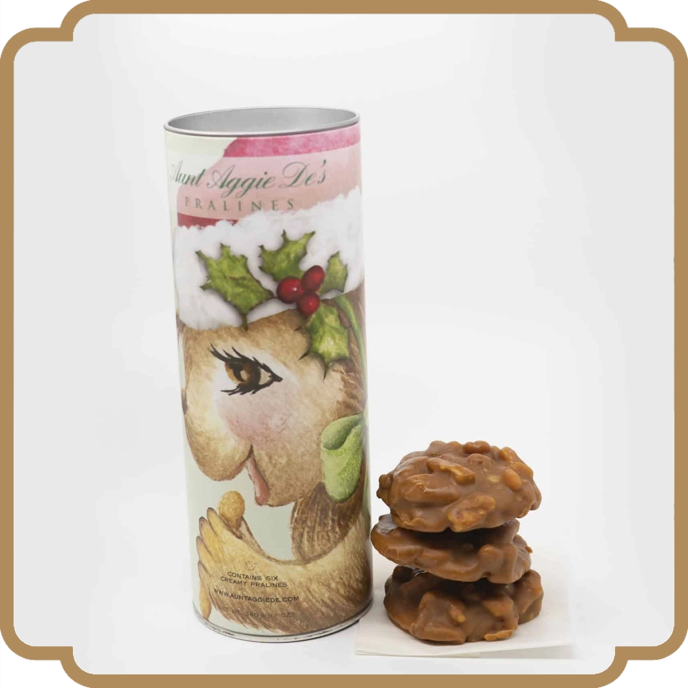 This tube is the perfect Christmas gift featuring Agnes the Squirrel in her festive Santa Hat adorned with holly berries. Our Agnes Santa Tube comes with six classic and sumptuous Creamy Pralines.