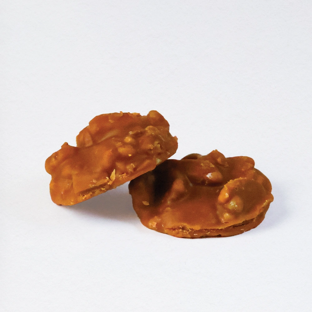 Our original creamy, chocolate, and vanilla pralines have a shelf life of 3 weeks but can be frozen up to a year. Our chewy and coconut chewy praline will easily last at least 6 months without any special care. However, extremely hot temperatures will cause them to melt. They will reform when brought back to room temperature but may stick to the wrap slightly. Keeping all of our confections away from direct sunlight and excessive air circulation will help to preserve them. There are no preservatives in any of our products and we plan to keep it that way.